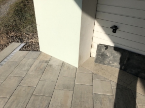 Velkoplošná dlažba na vjezdu do garáží, kanálky na odvod dešťové vody.